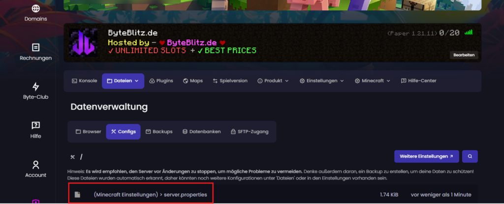 4. Profi-Tweaks in der server.properties