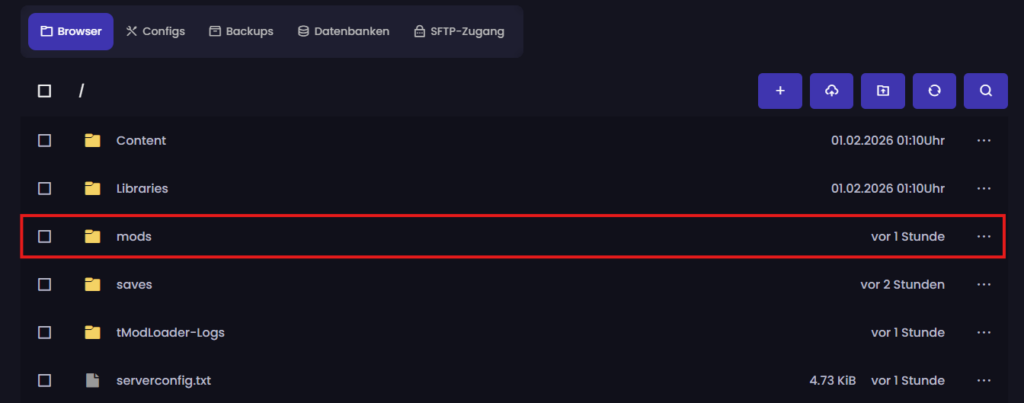 [ "CalamityMod", "CalamityModMusic", "RecipeBrowser" ] - Speichere die Datei ab, schließe das FTP-Programm und starte deinen Server neu.